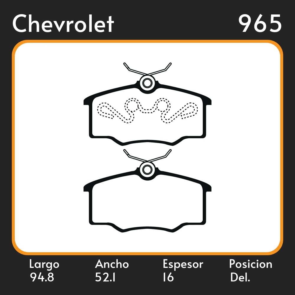 PASTILLAS DE FRENO COMPETICION CHEVROLET CORSA 1.0 - 1.4 - 1.6 96/00 LAR. 94.8 ANC. 52.1 ESP. 16 POSC. DEL. GUARDADO (407)