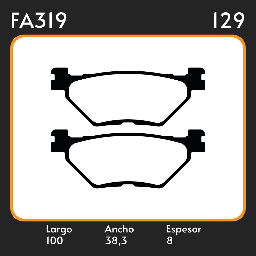 PASTILLAS DE FRENO YAMAHA FJR 1300 TDM 900 V MAX 1700 1700 09 STAR WARRIOR 1700 02 XV 1700 ROAD STAR WARRIOR 1700 08 XV 1900 LAR. 100 ANC. 38.35 ESP. 8 POSC. DEL. GUARDADO FA 319